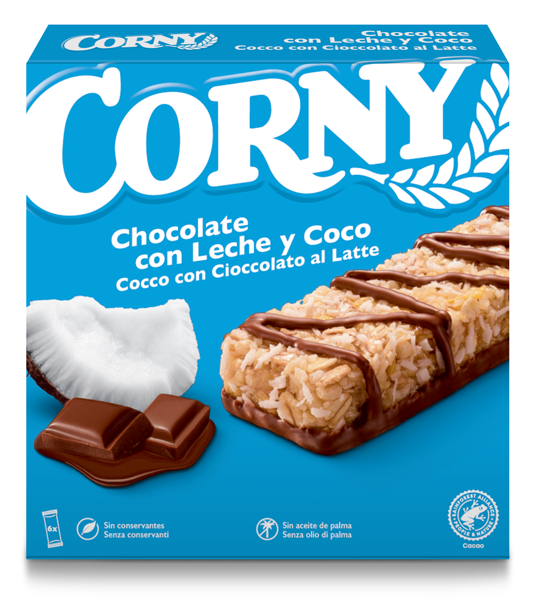 Le barrette ai cereali CORNY sono ricche di cereali e ingredienti di qualità a cui non potrai resistere. Prova CORNY Cioccolato e Cocco, con i suoi pregiati fiocchi di avena e frumento, gustose scaglie di cocco e delizioso cioccolato al latte.